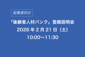 この後継者人材バンク登録説明会は、事業を引継いで起業したいとお考えの【個人の方】向けです。