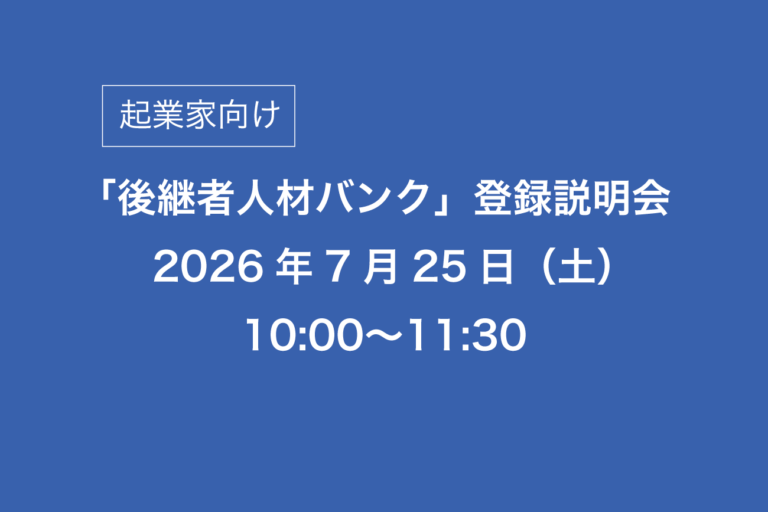 ※オンラインには対応しておりません。 この後継者人材バンク登録説明会は、事業を引継いで起業したいとお […]